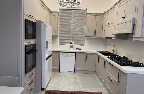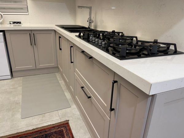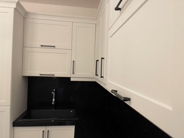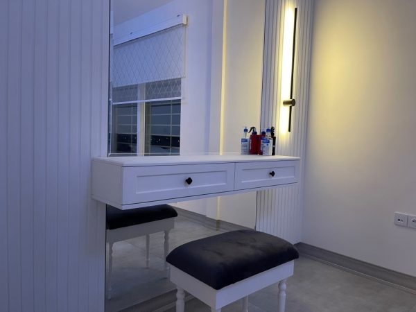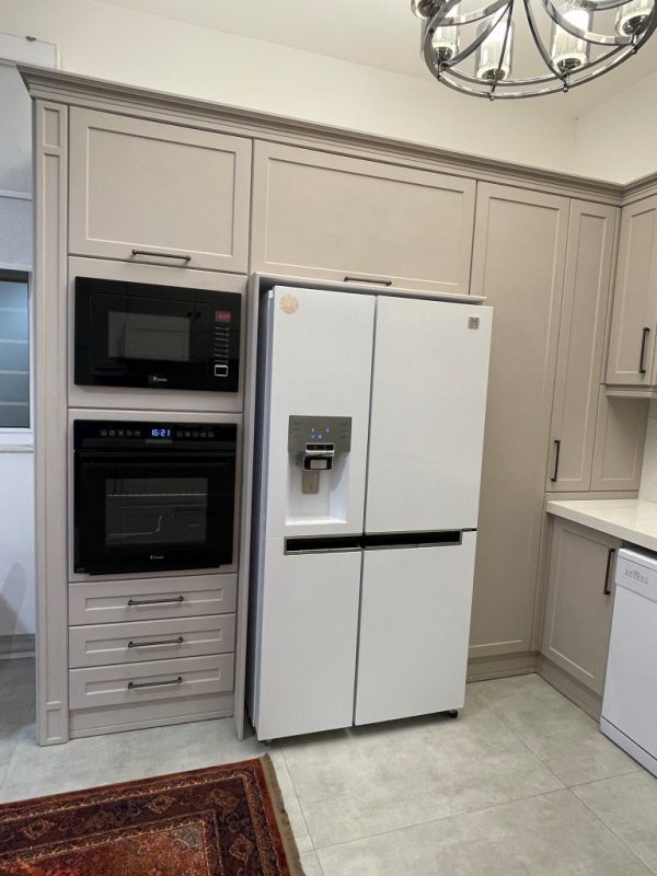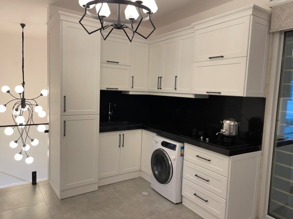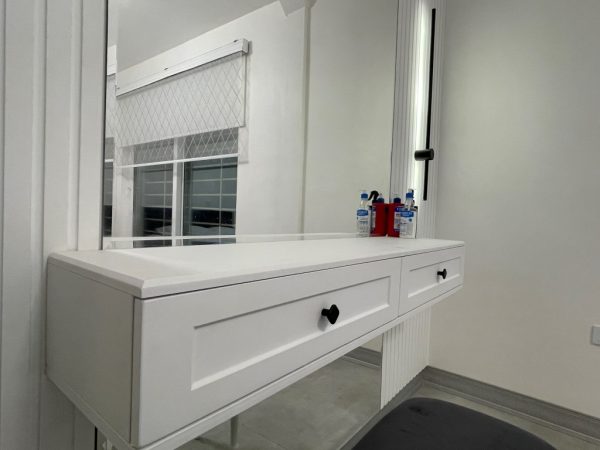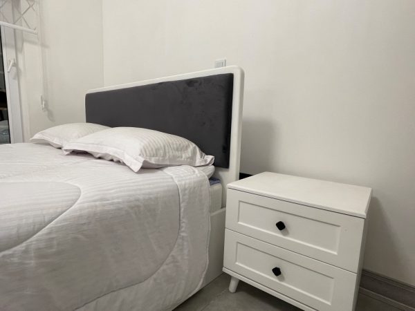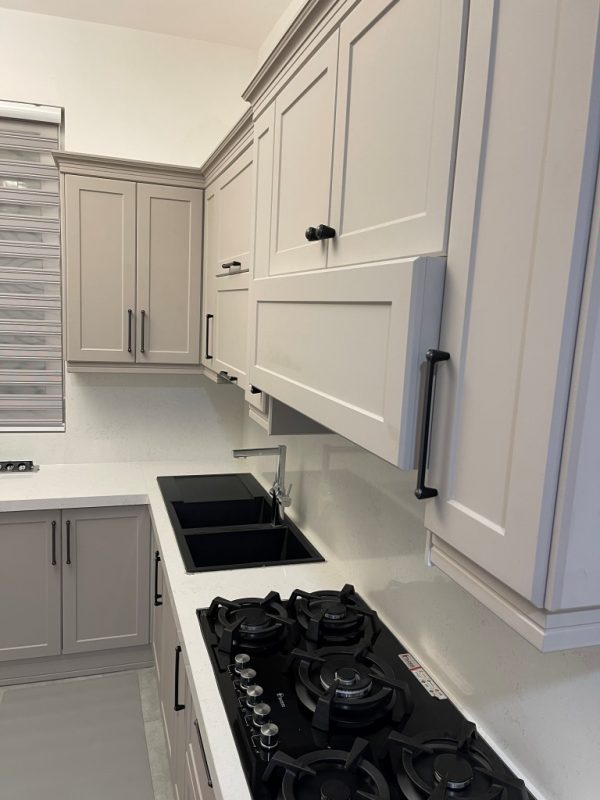 کابینت‌های آشپزخانه با استفاده از متریال مرغوب MDF و روکش‌های مقاوم در برابر رطوبت، در دو رنگ سفید براق و طوسی مدرن طراحی شده‌اند که با صفحه‌کارهای مشکی و یراق‌آلات باکیفیت، هماهنگی چشمگیری با دکوراسیون امروزی ایجاد می‌کنند. این کابینت‌ها با طراحی ارگونومیک و فضای ذخیره‌سازی بهینه، پاسخگوی نیازهای متنوع آشپزی و نظم‌بخشی به آشپزخانه هستند. سرویس خواب با بدنه سفید و ساختاری محکم از چوب طبیعی، به همراه خطوط ساده و مینیمال، آرامش و راحتی را به اتاق خواب هدیه می‌دهد و با طراحی کاربردی، فضایی دلپذیر برای استراحت فراهم می‌کند. کمد دیواری‌های جادار با دستگیره‌های مشکی و نمای سفید، به‌گونه‌ای طراحی شده‌اند که علاوه بر ظرفیت بالا برای نگهداری وسایل، جلوه‌ای یکپارچه و مرتب به محیط می‌بخشند. تمامی این محصولات با بهره‌گیری از استانداردهای روز تولید و با نصب دقیق توسط تیم حرفه‌ای شرکت اجرا شده‌اند تا دوام و زیبایی را در کنار هم ارائه دهند.